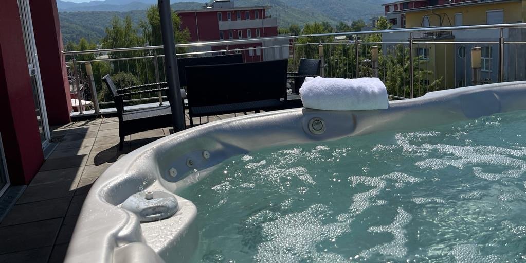 Penthouse de lux in Brasov - semineu si terasa mare cu Jacuzzi